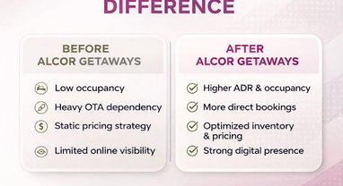 Alcor Getaways is a leading hotel marketing agency helping hotels and resorts boost occupancy and revenue through expert hotel revenue management, digital marketing for hotels, GMB optimization, OTA management, hotel sales support, and complete hospitality marketing services. As a trusted hotel marketing agency in India, we provide tailored strategies, performance-driven campaigns, Google Ads for hotels, email marketing services, and business development solutions. Our transparent, reliable hotel marketing services enhance visibility, strengthen demand, and maximize profitability. Partner with us to elevate your brand and grow your bottom line.